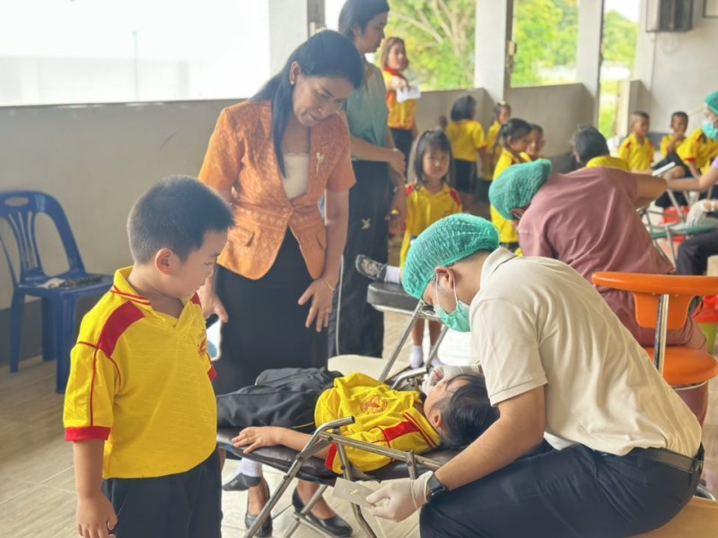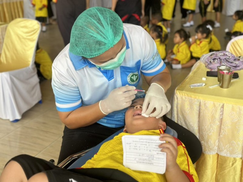 ?2. บริการตรวจสุขภาพช่องปากนักเรียน และเคลือบฟลูออไรด์ ให้กับนักเรียนชั้นอนุบาล 1 - ชั้นประถมศึกษาปีที่ 6