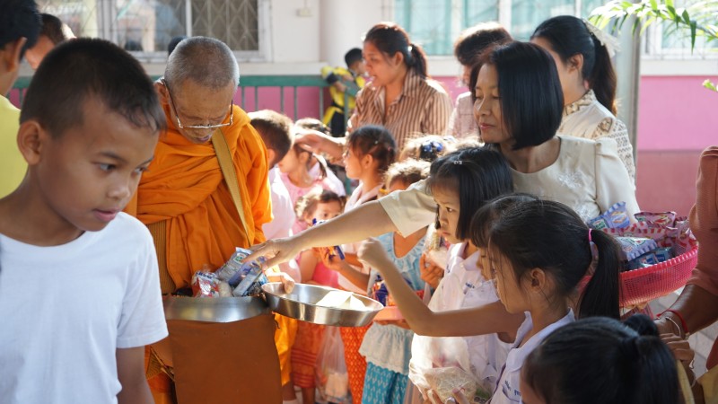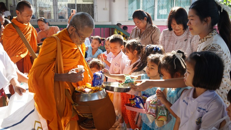 พิธีทำบุญ ตักบาตรข้าวสารอาหารแห้ง ลูกๆนักเรียน และผู้ปกครอง