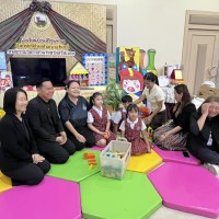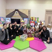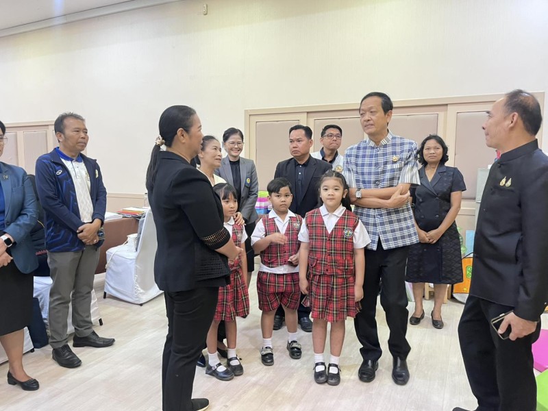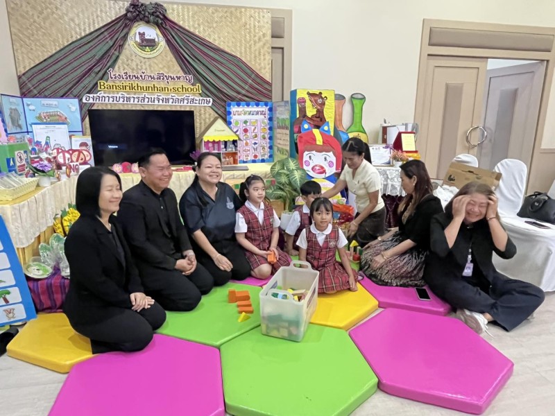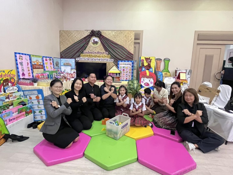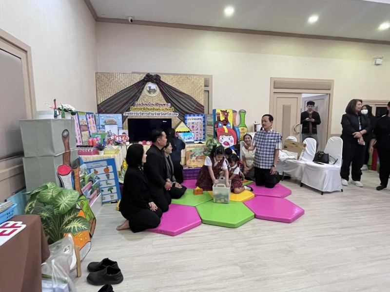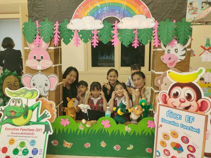 ?ดร.กมลชนก วงวาฬ คณะครูปฐมวัย และนักเรียนชั้นอนุบาล 3 ร่วมต้อนรับและประจำบูธนิทรรศการ