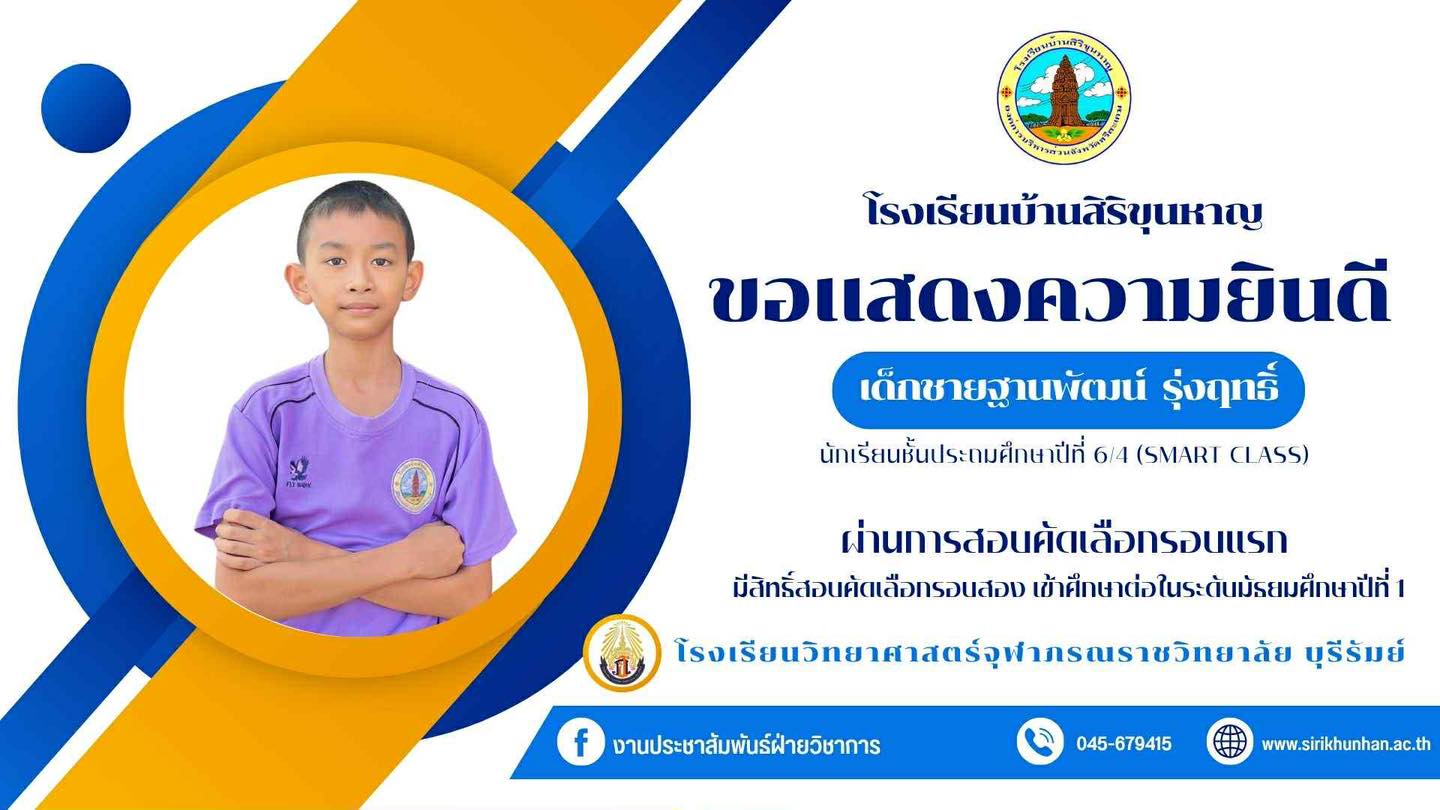 ขอแสดงความยินดีอย่างยิ่ง กับ เด็กชายฐานพัฒน์ รุ่งฤทธิ์