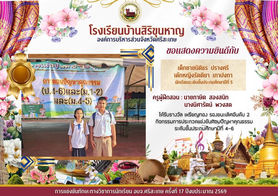 ตอบปัญหาคุณธรรม ระดับชั้นประถมศึกษาปีที่ 4–5